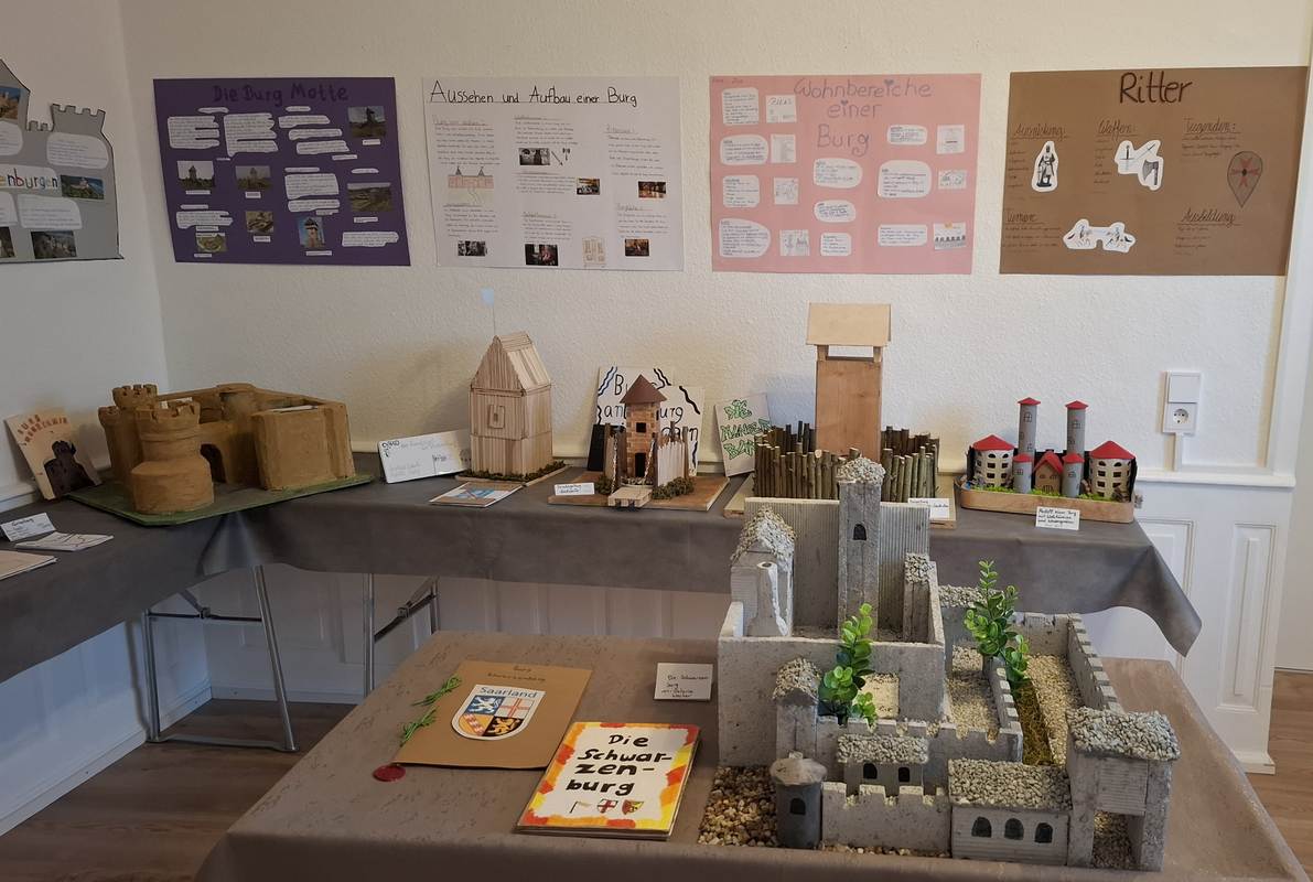 Um einen Einblick in lokale Besonderheiten zu erhalten, untersuchten die Schülerinnen und Schüler auch historische Bauwerke im Landkreis Merzig-Wadern. Dazu recherchierten sie die Geschichte verschiedener Burgen im Stadtgebiet sowie in der Region und erstellten dazu jeweils eigene „Geschichtsbücher“ sowie kreative Modelle der von ihnen ausgewählten Burgen. In Kooperation mit dem Stadtmuseum Wadern sind die eindrucksvollen Ergebnisse dieser Arbeit nun in Form einer Sonderausstellung zu bewundern.